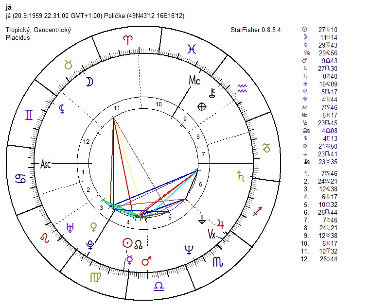 Moje stručné kosmické nastavení z data narození Astrologicky- Panna s ascendentem v Raku, Panny rády pomáhají a ve spojení s citlivým Rakem dostávám a rozvíjím potřebnou intuici, vhledy a touhu jít k čistotě poznání. Smysl pro detail i analýzu v kombinaci s astrologickými zkušenostmi, psychologickým vzděláním i vcítěním se, to mi umožňuje poskládat kaleidoskop horoskopu do jedinečného tvaru a zabarvení a zaznamenat to písemně pro toho, kdo chce jít v životě hlouběji , pod povrch běžné reality.
